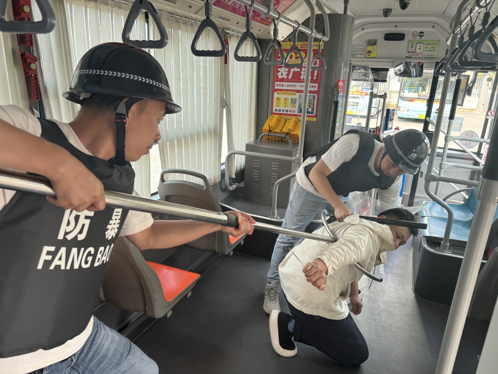 圖/防恐演練中,通過模擬真實場景,職工學習如何識別可疑人員、如何應對突發(fā)事件,如何迅速而有效地采取應對措施,包括疏散乘客、報警、緊急應對等。